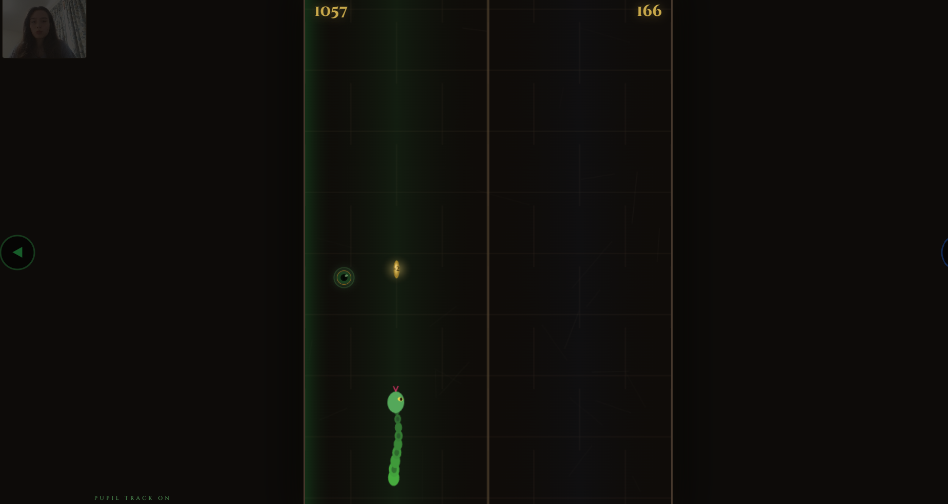 Slither by Sight is a gaze-controlled snake game. Players guide a snake left and right using only pupil movement to escape danger. You need to avoid the stones in order to stay alive. Gold coins give you x2 points!